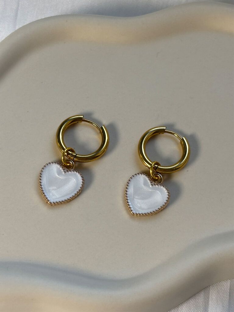 Goldene Creolen aus Edelstahl mit Herzanhänger