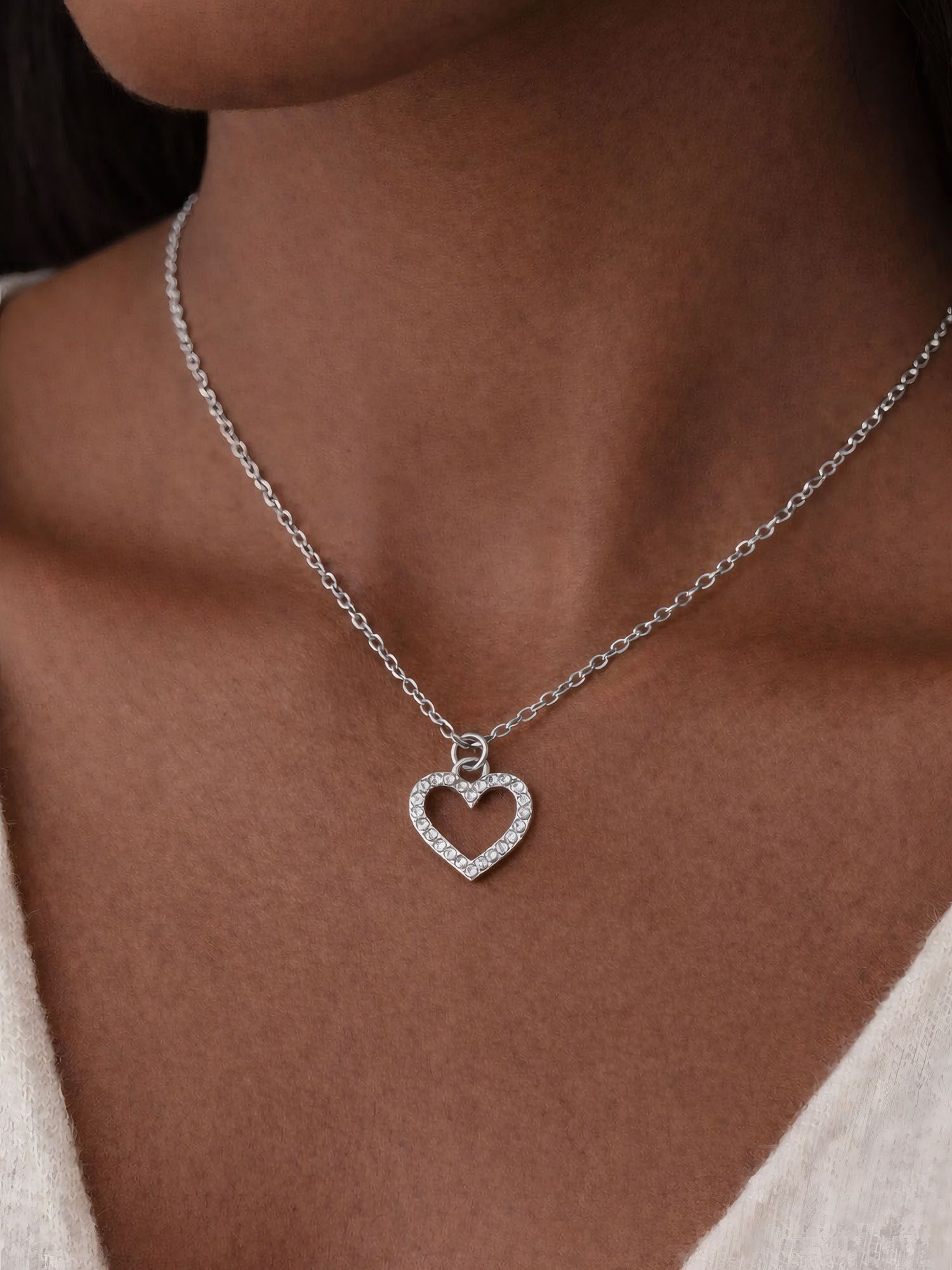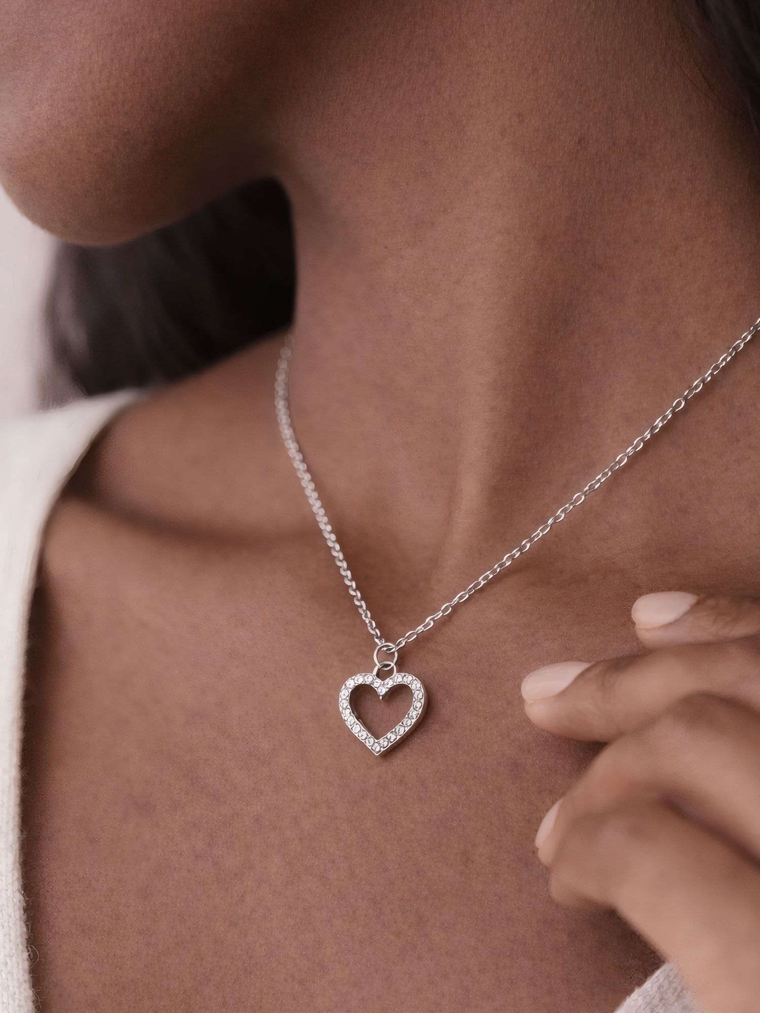 Die Kombination aus schlichter Edelstahlkette und einem mit Glitzersteinchen besetzten Herzanhänger macht dieses Schmuckstück zum dezenten Highlight. Leicht, feminin und modern – ein perfekter Allrounder für jeden Stil.